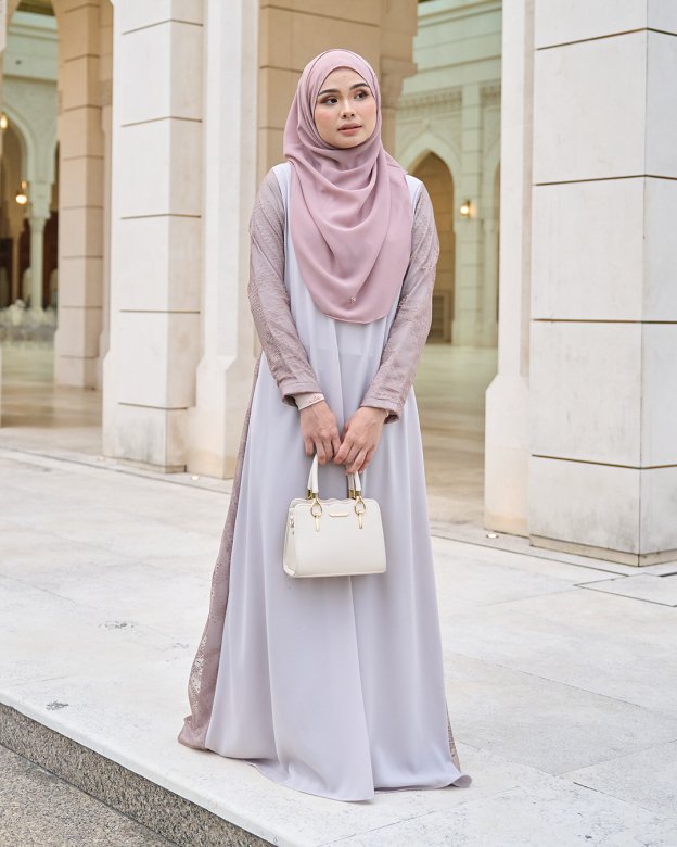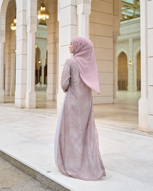 The Abaya Lace Cassidy in Chrysler combines classic black fabric with lace detailing, offering a timeless look suitable for various occasions. Its design emphasizes grace and simplicity.