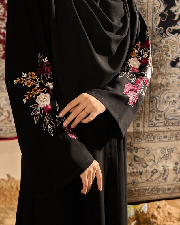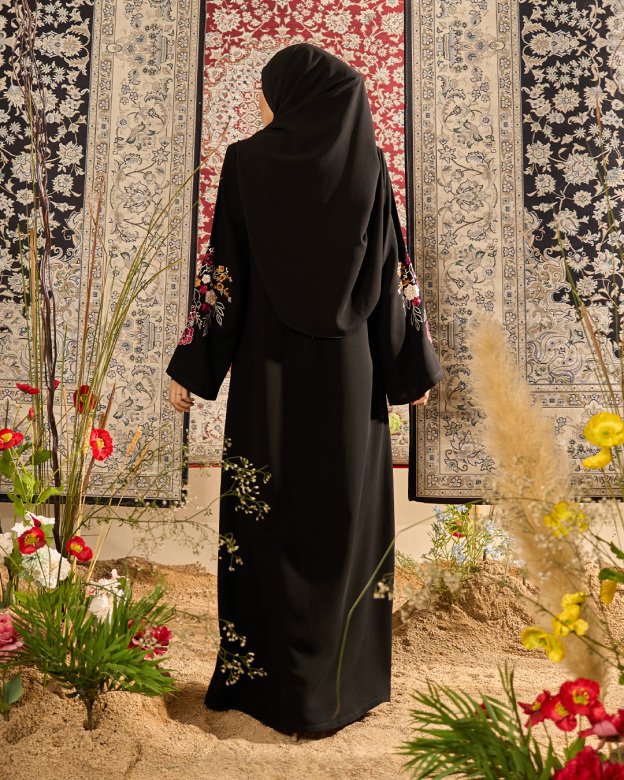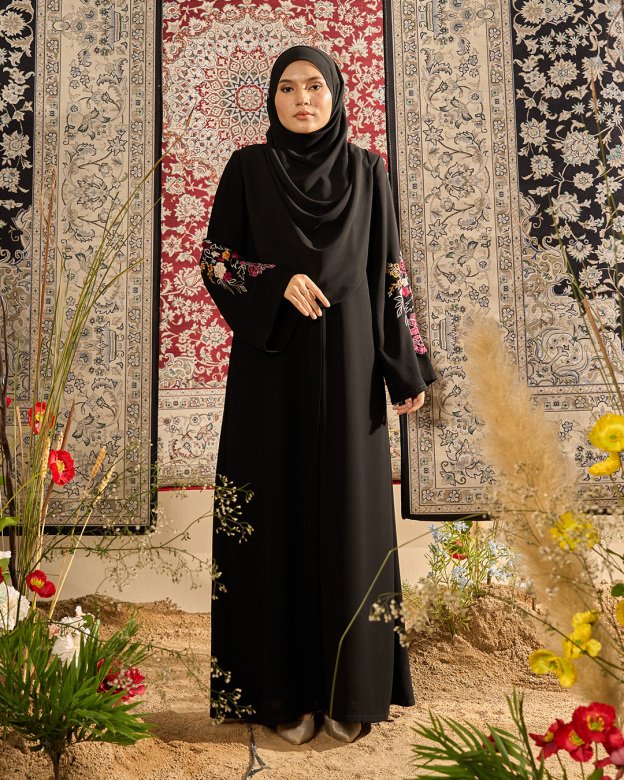 The Abaya Sulam Raisa in Black Garden combines traditional elegance with modern floral embroidery. Crafted from high-quality fabric, it offers comfort and style for various occasions.