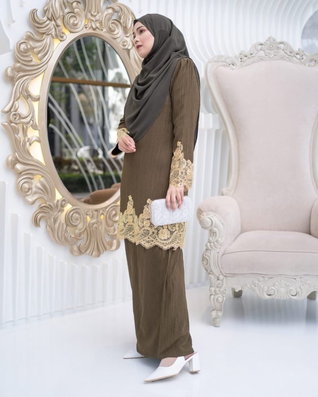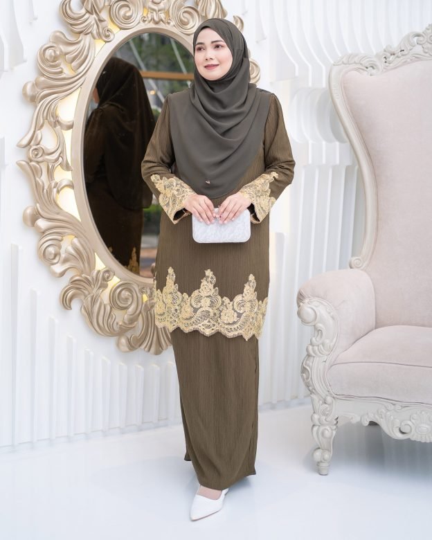 Inspired by nature’s elegance, the Baju Kurung Moden Lace Hayley in Olive Green delivers a refined earth-tone look ideal for the modern minimalist. The soft lace paired with clean lines and a streamlined fit ensures you stand out effortlessly at garden or formal events.