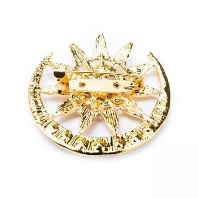 A luxurious gold-plated pin featuring intricate crescent moon and star designs, symbolizing faith and adding a touch of celestial elegance to your modest attire.